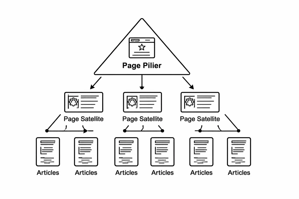 Si vous deviez retenir une image mentale : la base nourrit le sommet, et le sommet guide la base. C’est structuré, hiérarchique, propre. Et Google adore quand c’est propre .